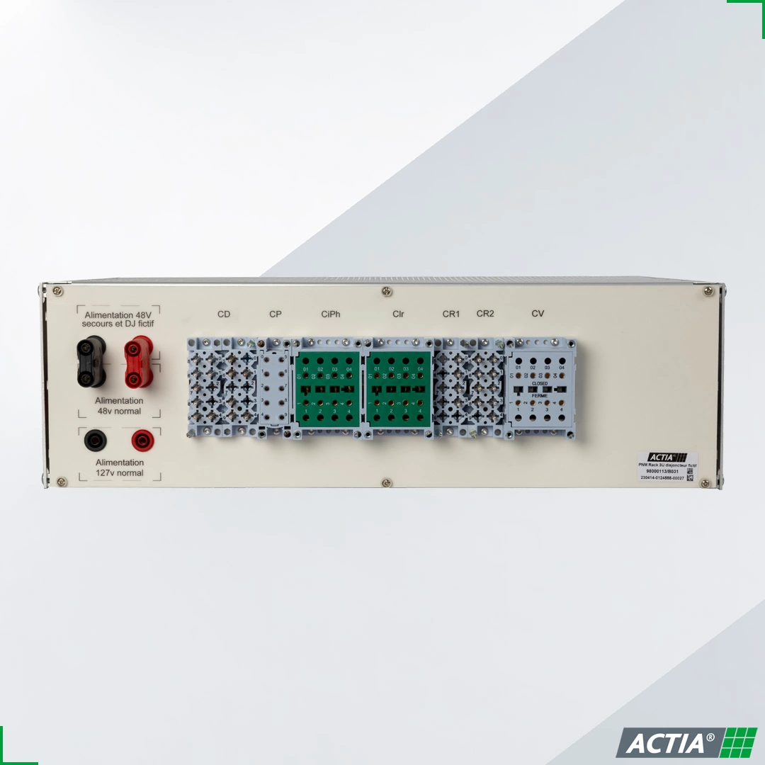 El disyuntor Ficticio PNM rack 3U es una solución de prueba dedicada a las protecciones digitales PCCN. Gracias a sus conexiones ESSAILEC, su interfaz táctil intuitiva y su compatibilidad multimarca (48V / 127V), permite simular con precisión todas las condiciones de funcionamiento de un interruptor ficticio de MT: rearme del motor, umbrales de SF6, enchufado/desenchufado, no complementariedad, fallos Buchholz, etc.